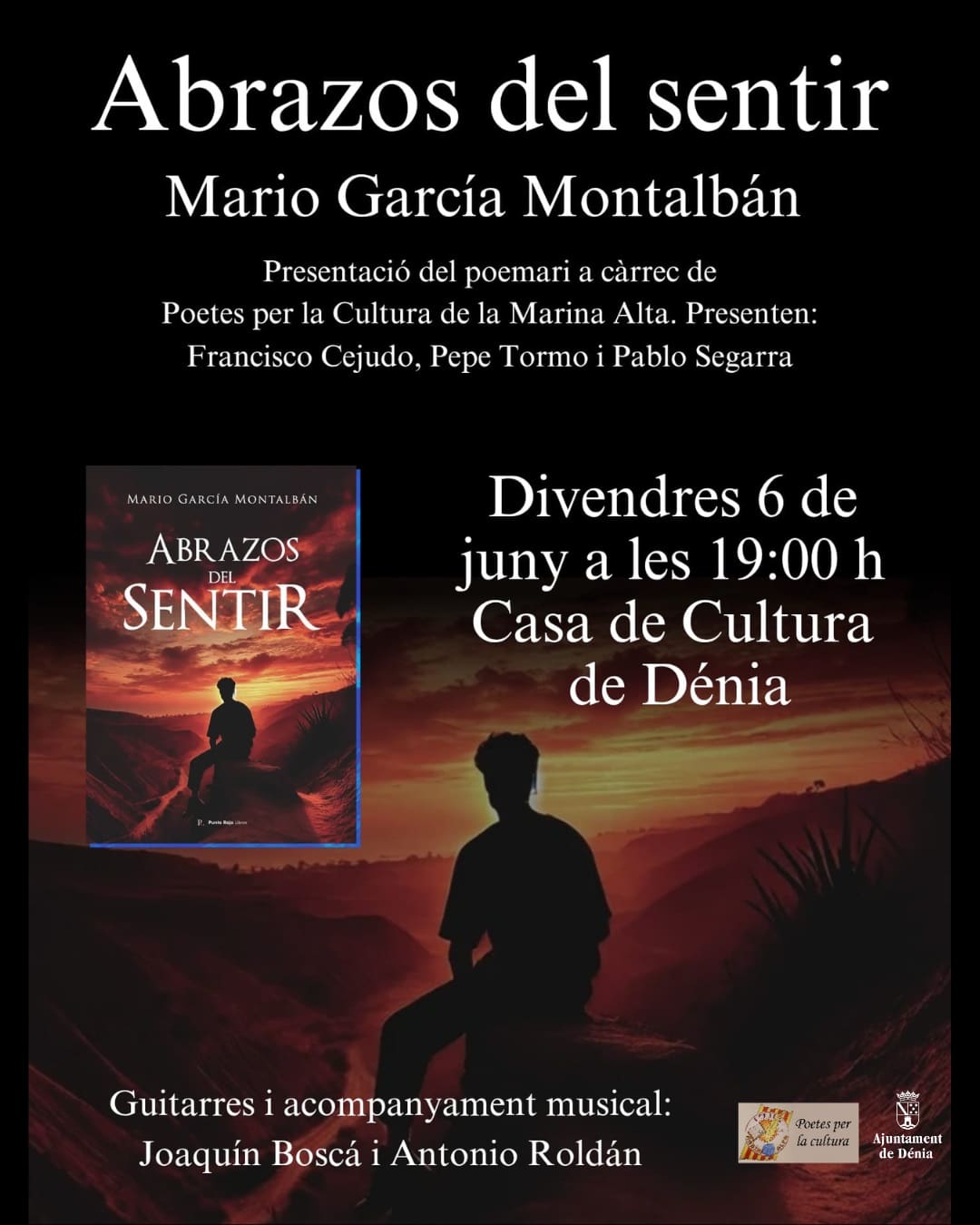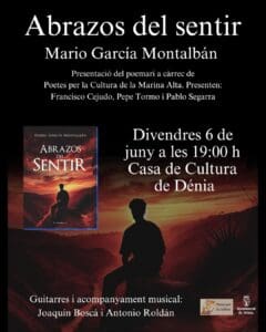 Presentació del poemario a cargo de Poetes per la Cultura de la Marina Alta.Presentan: Francisco Cejudo, Pepe Tormo y Pablo Segarra.Guitarras y acompañamiento musical: Joaquín Boscá y Antonio RoldánOrganiza: Poetes per la cultura. Colabora: Ajuntament de Dénia. Cultura Entrada libre hasta completar aforo.