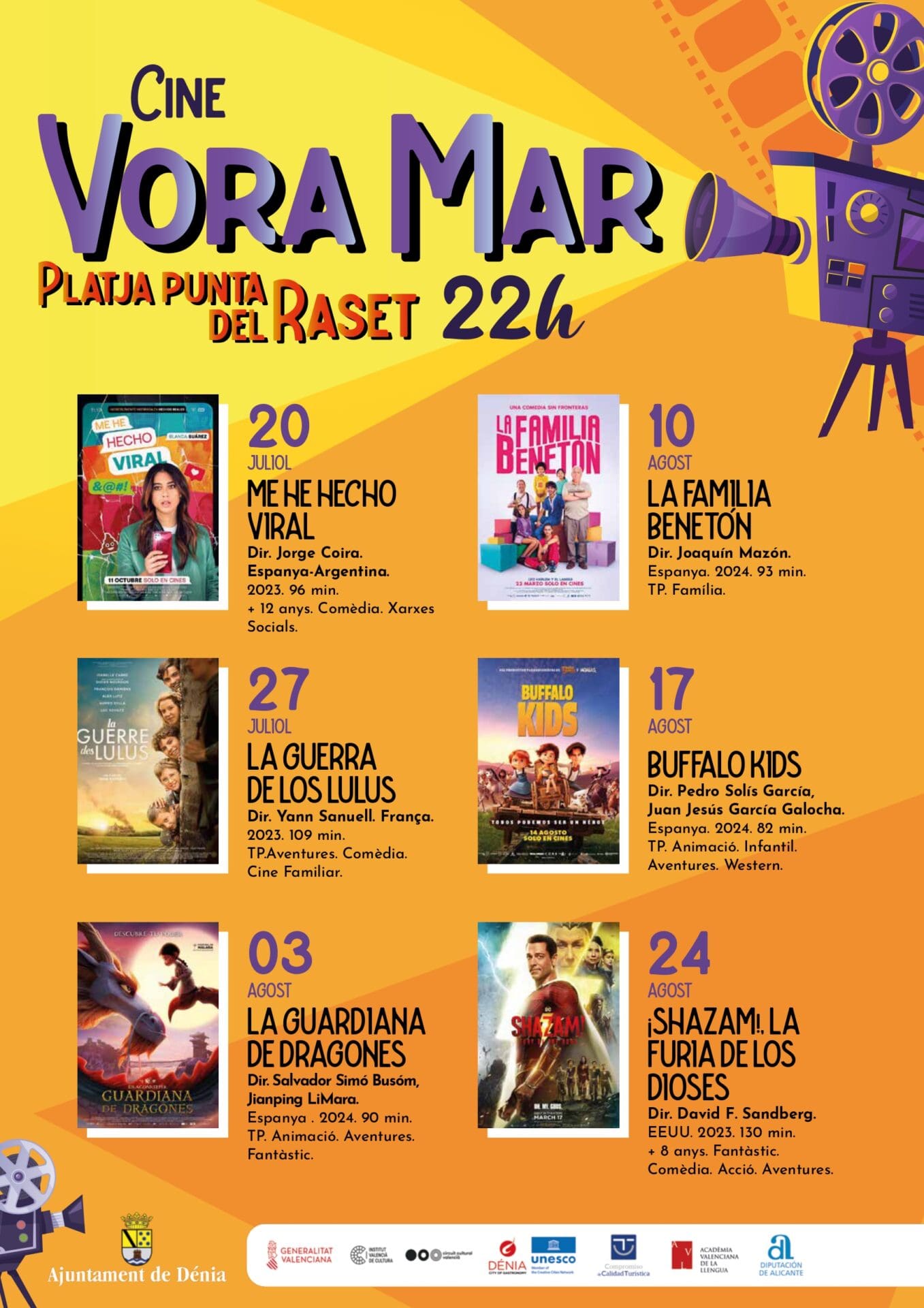 Cada domingo del 20 de julio al 24 de agosto a las 22 h cita a la orilla del mar.Cine para toda la familia.