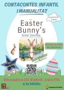 CUENTA CUENTOS INFANTIL + MANUALIDAD Easter Bunny’sPOr Nieves Sendra Mefford(cuento en inglés)El viernes 25 de abril, a las 17 h, en la Biblioteca Pública de Dénia (c/ de Sant Josep, 6)Edad: a partir de 3 añosSe necesita inscripción previa al tel 965783665