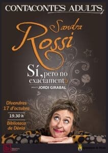 Cuenta cuentos para adultos, Sí, pero no exactamente, por Sandra Rossi.Os esperamos el viernes 17 de octubre, a las 19.30 h, en la Biblioteca de Dénia (c/ de Sant Josep, 6)