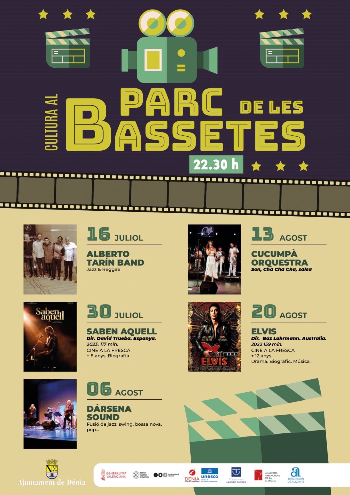Los miércoles 16 y 30 de julio y 6, 13 y 20 de agosto a las 22.30 h cita en el parque de les Bassetes. Música y cine al aire libre.Entrada libre.