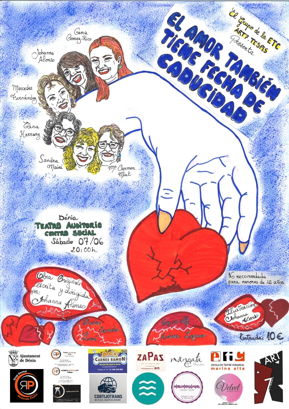 Grup de la ETC ART7.TESPISEscrita y dirigida: Johanna AlonsoActrices: Gema Gómez-Rico, Johanna Alonso, Mercedes Fernández, Elena Herranz, Sandra Maini, Mª Carmen Mut.Recomendada + 12  años.Entrada: 10 €.  Anticipada:  En  Estética Velvet ( c/Magallanes, 20) i/y en Marimandonas ( c/Quevedo,3)Taquilla:  una hora antes del espectáculo.
