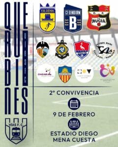El próximo domingo 9 de febrero se disputará en horario matinal la 2ª edición de la Convivencia de Equipos Querubines de fútbol 8, en las instalaciones del Campo Municipal de fútbol «Diego Mena Cuesta».Horario: A partir de las 9:00 h y hasta las 14:00 h.Clubes participantes:- F. B. Dénia- C. F. Benidorm- C. F. La Nucía- C. D. Jávea- Peña Deportiva La Marina – Jávea- Pego C. F.- F. B. Teulada – Moraira- Ondara Esport-viu- E. B. Benisa- C.E.I.P Les Vessanes – Dénia- EE.MM. El VergerOrganiza: F. B. Dénia y Vías C.F.