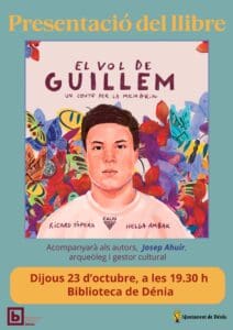 Presentación del cuento ilustrado, El vol de Guillem: un conte per la memòria, (editorial Caliu) de Ricard Tàpera y Helga Ambak.Acompañará a los autores, Josep Ahuir, arqueólogo y gestor cultural.Jueves 23 de octubre, a las 19.30 h, en la Biblioteca Pública de Dénia (c/ de Sant Josep, 6)