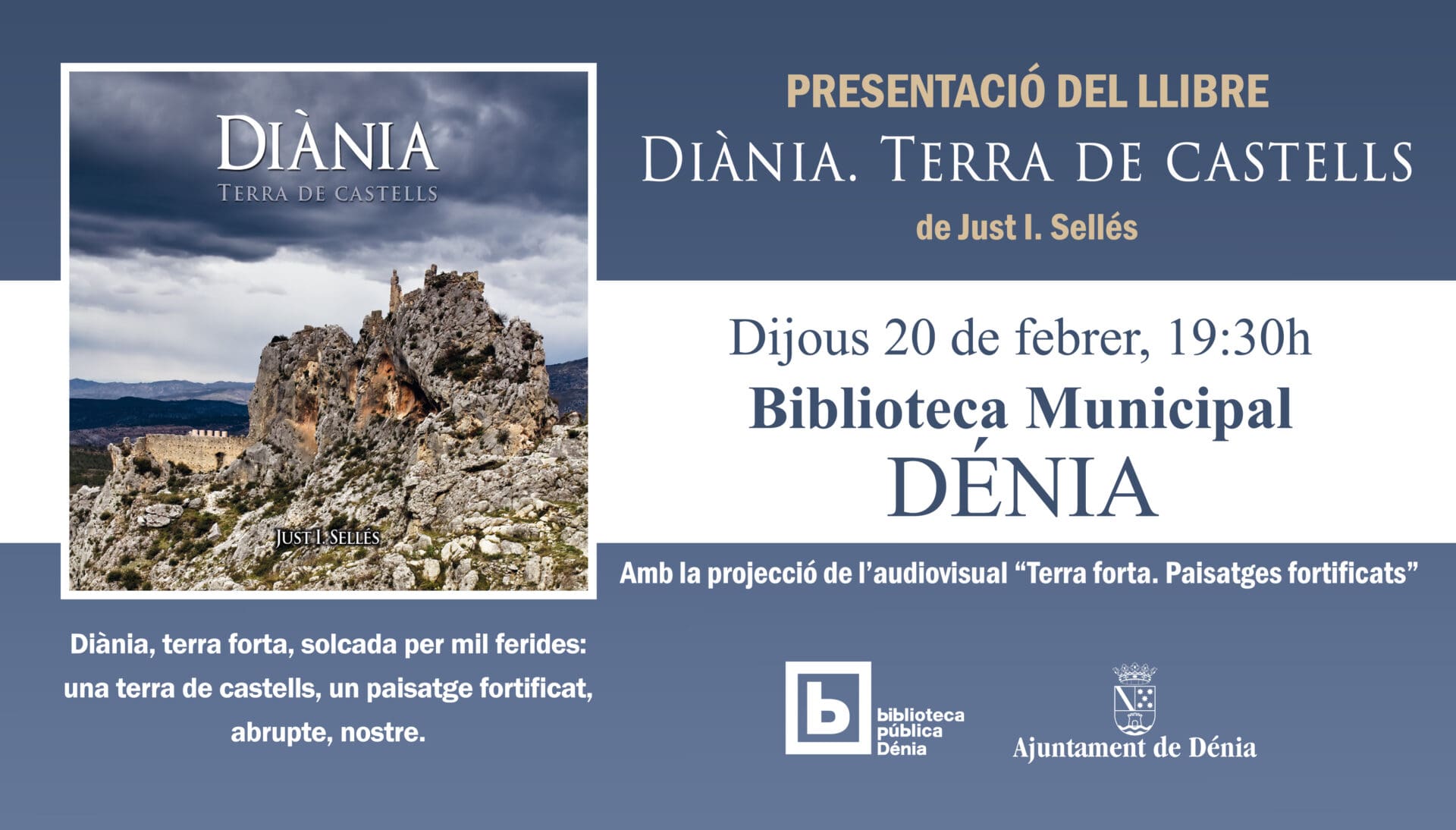 Presentación del libro Diània. Terra de castells, de Just I. Sellés (escritor y fotógrafo).Con la proyección del documental Terra forta, Paisatges fortificats.Jueves 20 de febrero, a las 19.30 h, en la Biblioteca Pública (c/ de Sant Josep, 6)