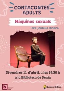 Erzählung für Erwachsene, Màquines sexuals, von Jordina Biosca. Freitag, 11. April, um 19.30 Uhr, in der Stadtbibliothek (c/ de Sant Josep, 6).