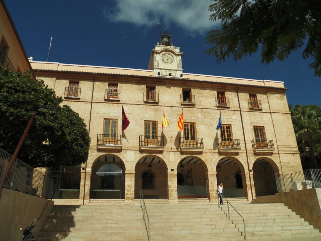 Resulta relevante la inscripción de época romana incrustada en medio de la fachada principal, así como otra inscripción situada en la parte del edificio que da a la calle Hospital, ambas pertenecientes al foro de Dianium, así como los dos pedestales romanos de acceso a dicha calle.