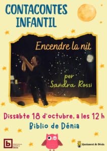 Children’s storytelling, Encendre la nit, by Sandra Rossi, for family audiences, we are waiting for you on Saturday, October 18th, at 12 noon, at the Dénia Library (c/ de Sant Josep, 6).