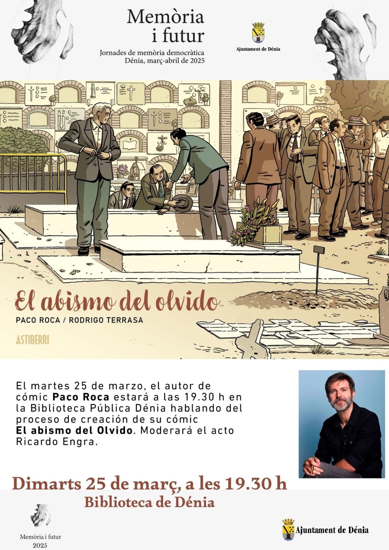 Presentation of the graphic novel “El abismo del olvido” and talk-colloquium, by its author Paco Roca, moderated by Ricardo Engra, journalist and founder of the Associació Valenciana del CòmicAct in SpanishWithin the cycle of Jornades de memòria democràtica: Memòria i futur 2025 Tuesday, March 25, 19.30 h.Public Library