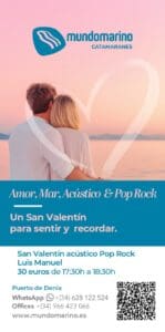 Celebración de San Valentín a bordo de un catamarán. Salida por la costa de Dénia al atardecer, amenizada con música Pop Rock a cargo de Luís Manuel.