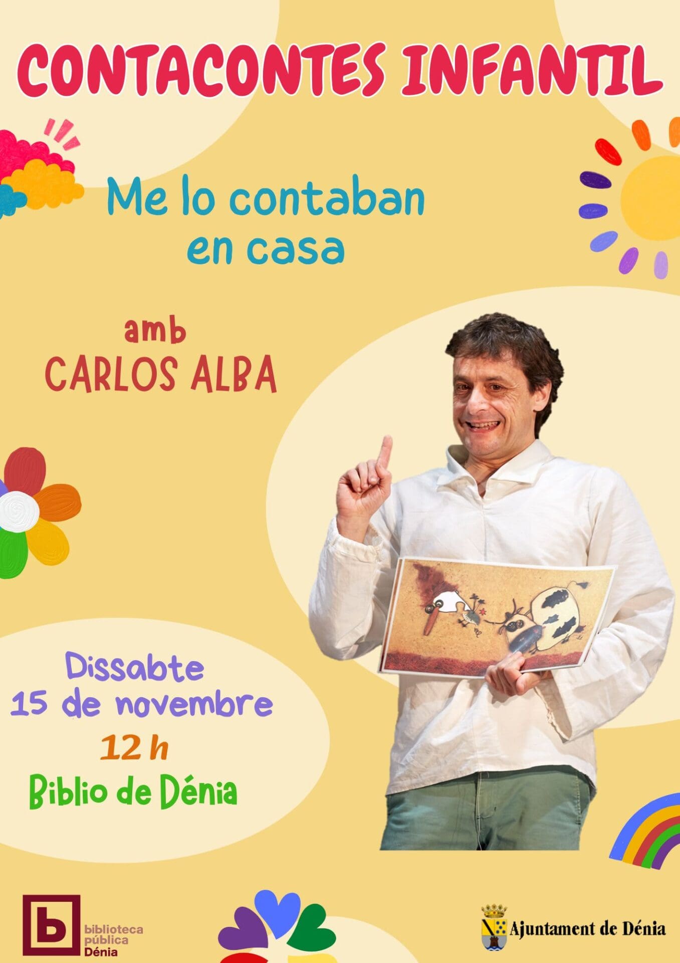 Cuentacuentos infantil, Me lo contaban en casa, por Carlos Alba.Para público familiar.Os esperamos el sábado 15 de noviembre, a las 12 h, en la Biblioteca de Dénia (c/ de Sant Josep, 6)