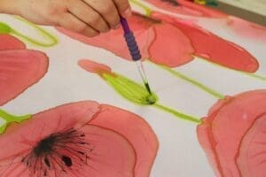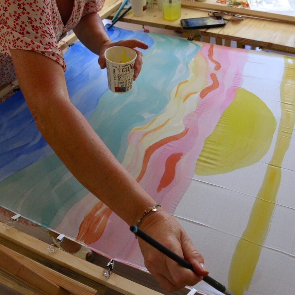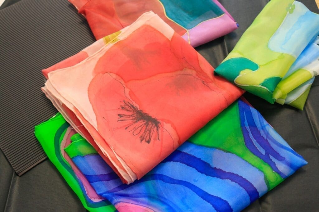 Nous utiliserons des foulards en soie naturelle, des pinceaux, des cadres et de la peinture spéciale pour soie. Matériel fourni.