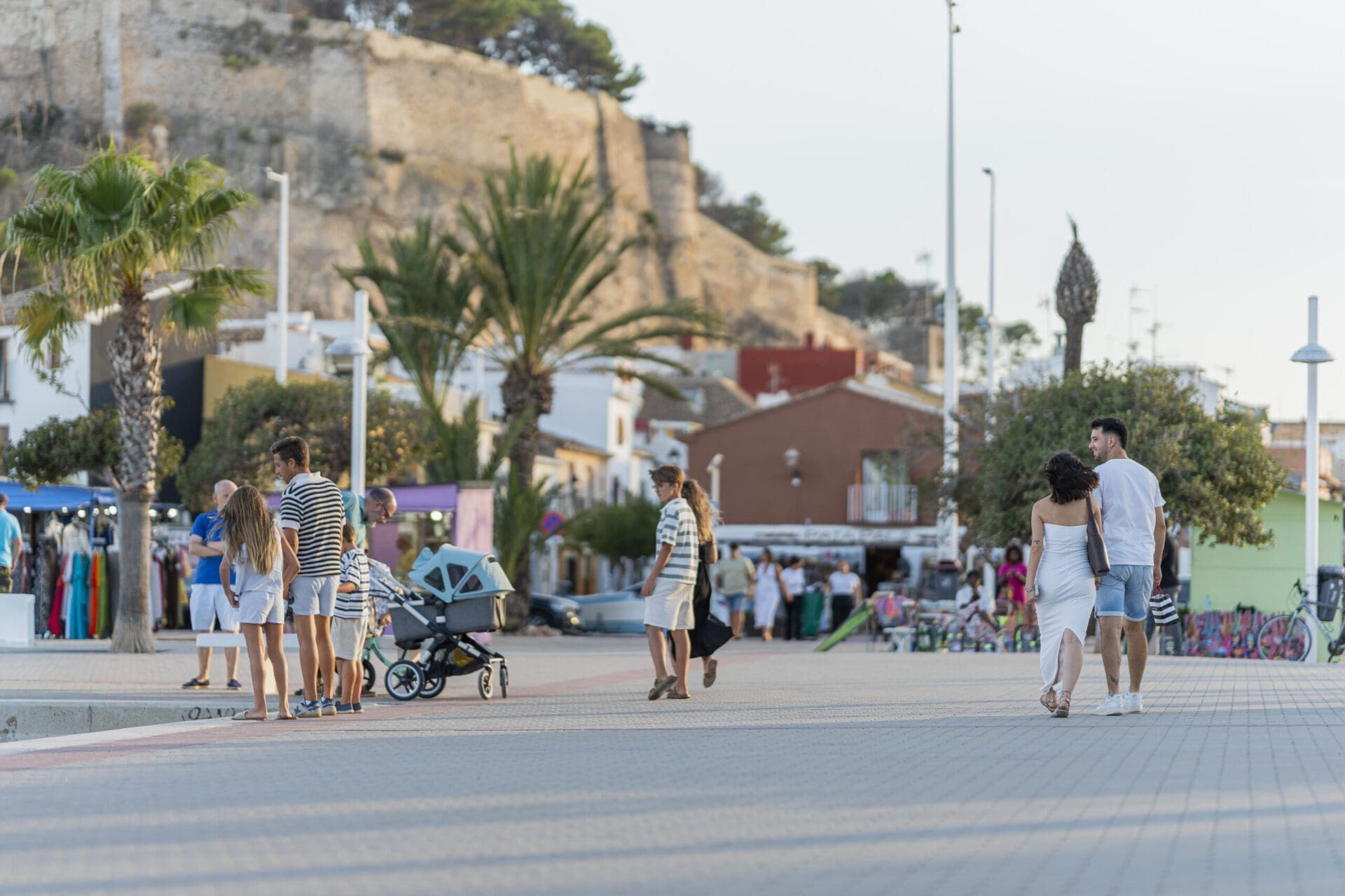 La Explanada Cervantes, situada justo frente al puerto de Dénia, es un espacio peatonal animado y emblemático, flanqueado por palmeras y rodeado de restaurantes y terrazas. Debe su nombre al célebre escritor Miguel de Cervantes, quien desembarcó en estas tierras tras su cautiverio en Argel en 1580; un busto en su honor se encuentra al final del paseo.