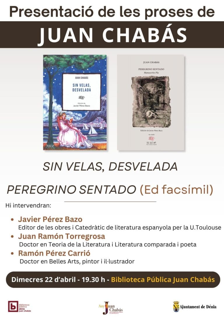 Us esperem el dijous 19 de febrer a les 19.00 h, a la Biblioteca Pública Juan Chabás (c/ de Sant Josep, 6. Dénia 03700)